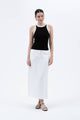 Black square neck sleeveless blouse.
